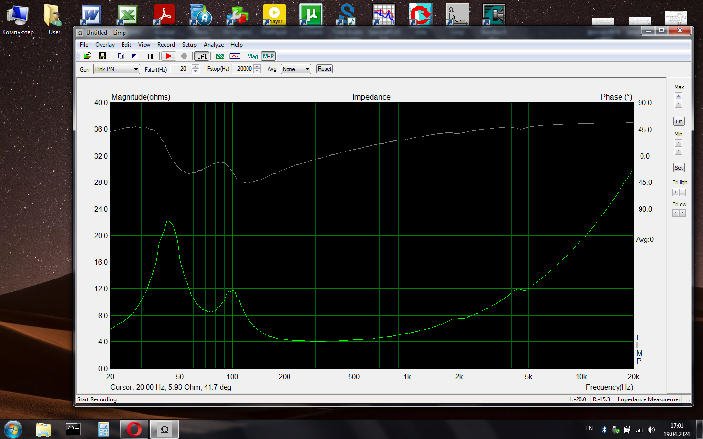 Длина трубы 60мм диаметр 50, поэтому, я просто не знал куда смотреть, теперь понял между горбами где самый меньший импеданс там и частота настройки ФИ, правильно я понял?