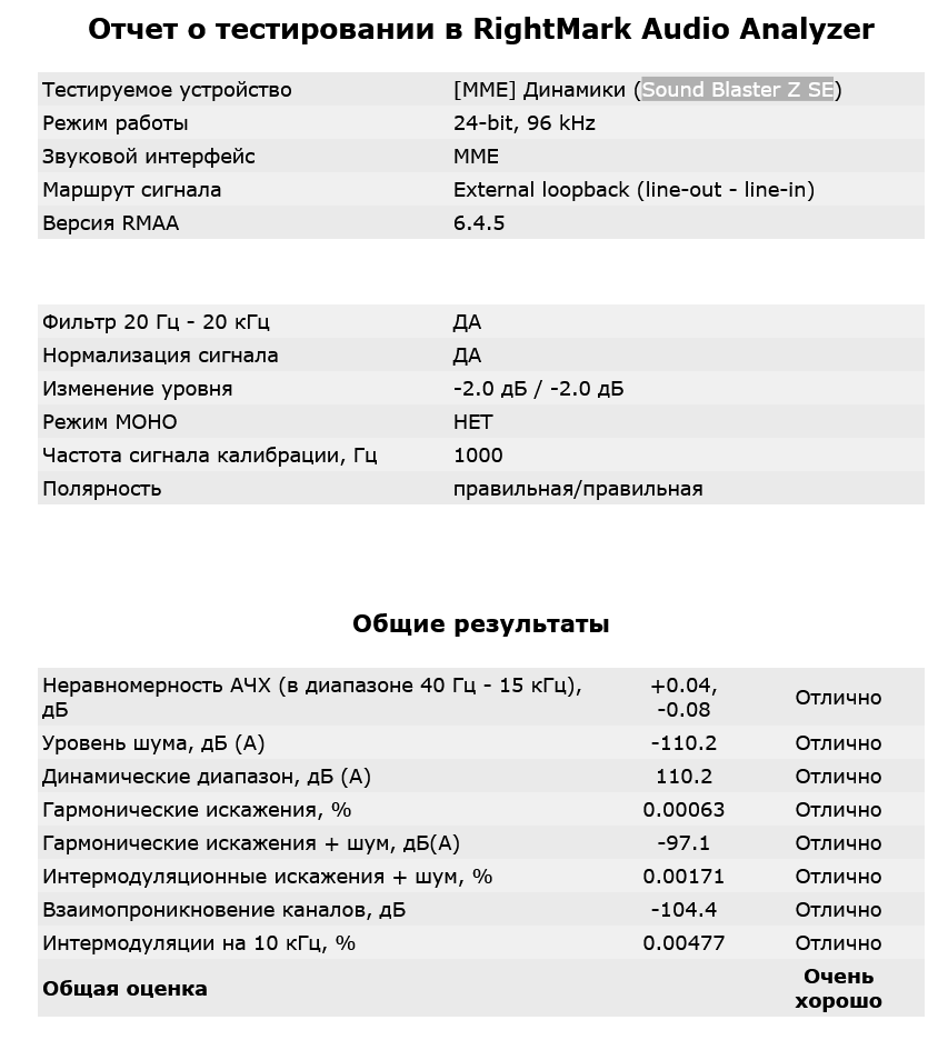 Замерял через E-MU 0404,линейный выход в режиме ,,директ,,