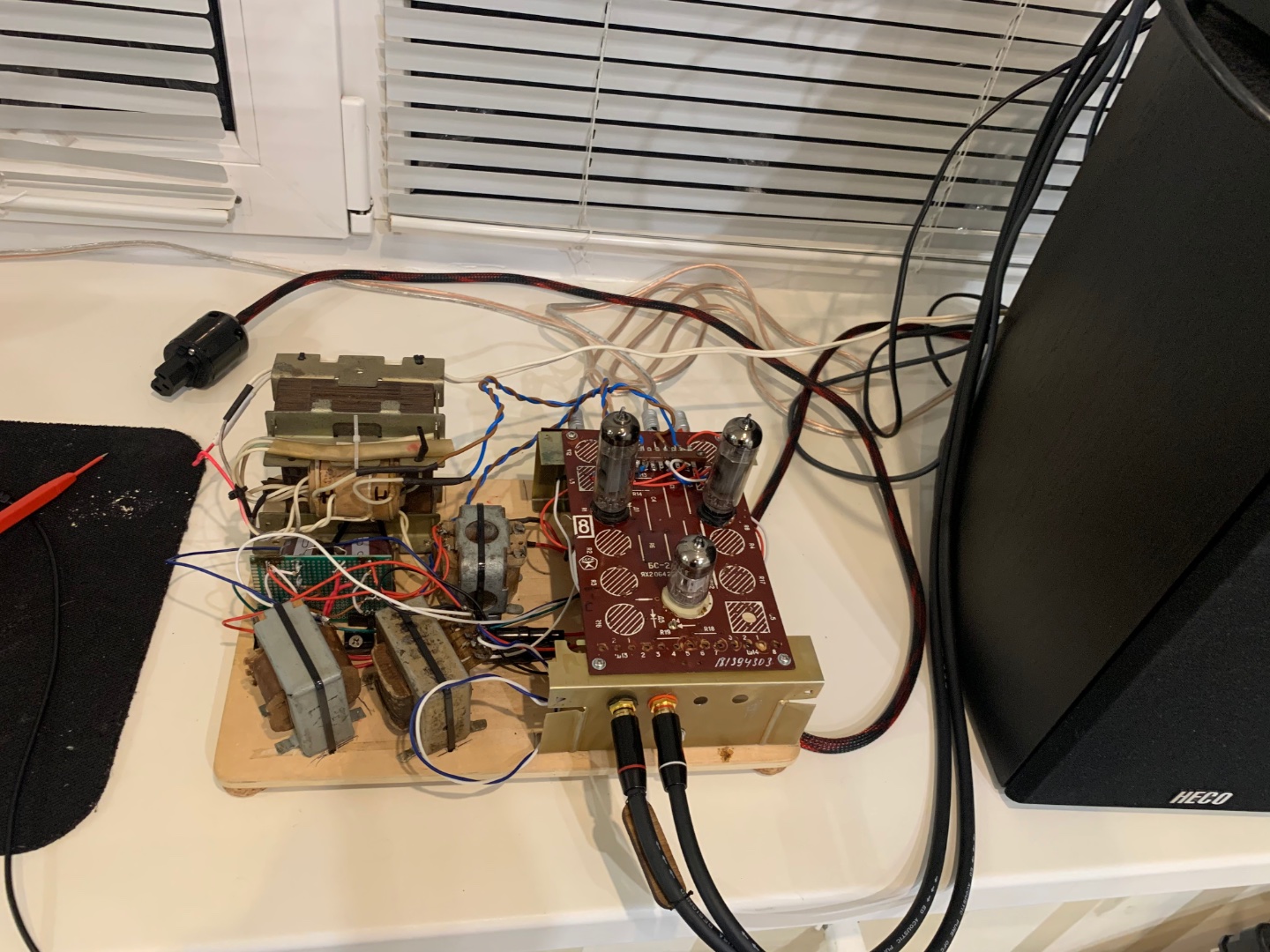 Доброй ночи )) мой Франкенштейн запел ))) рад безумно . И звук как по мне отличный . Пока работает только 1 канал ) нет лампы еще одной на выход пока что . Так же получил стрельнувшим кондером ) на фото выше видно , что попутал полярность . Есть фон (питание накала еще не заземлено ) в общем есть ...
