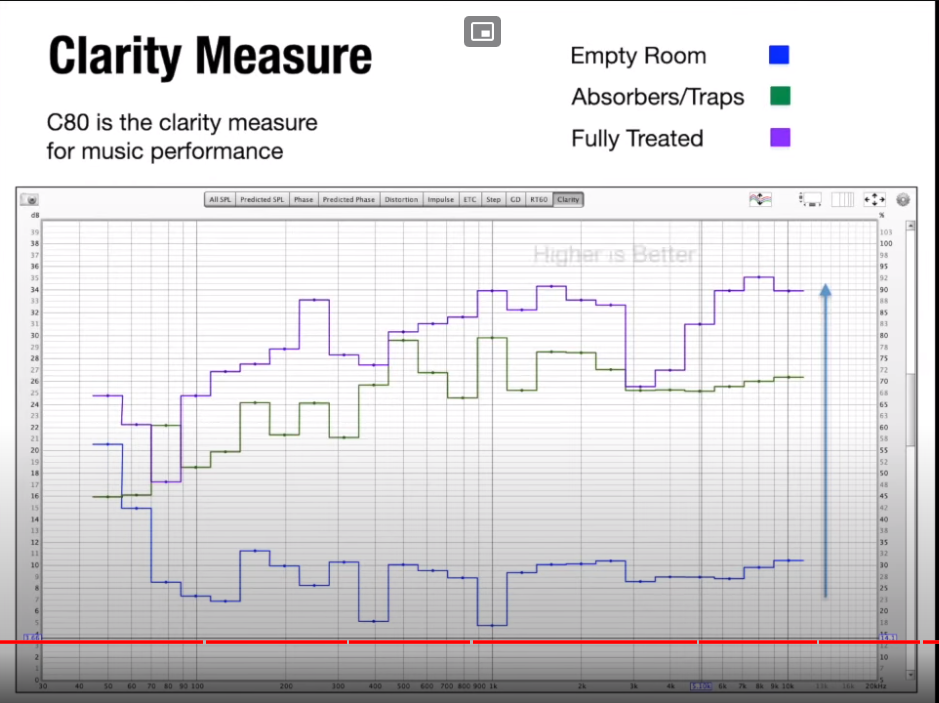 Основне що там можна побачити По графіках RT60 і Clarity бачимо значні покращення, але от графік АЧХ моніторів і сабвуфера, виглядає щось не дуже. Щоб поправити провали в басовому диапазоні його поглиначів не вистачило і щоб на них реально влинути, треба вже не сотні літрів, а кубометри басових ловушок, або інший підхід.