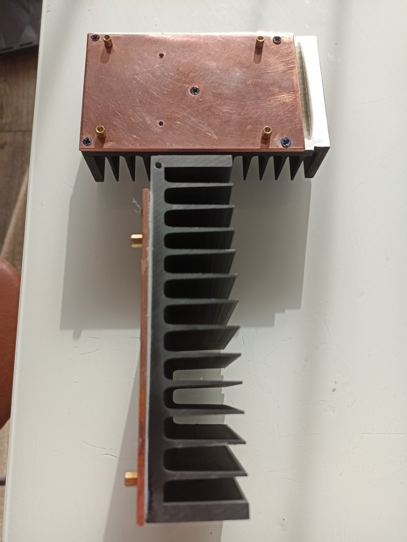 Затеял апгрейд. Заменил блоки питания на 53 Вольтовые. Выдают 56 Вольт. Теперь с усилителей легко снимается по 280 Ватт. Но ввиду этого усилился нагрев. Чтож, золота у нас много :) сделаю "золотые" подложки 4мм.