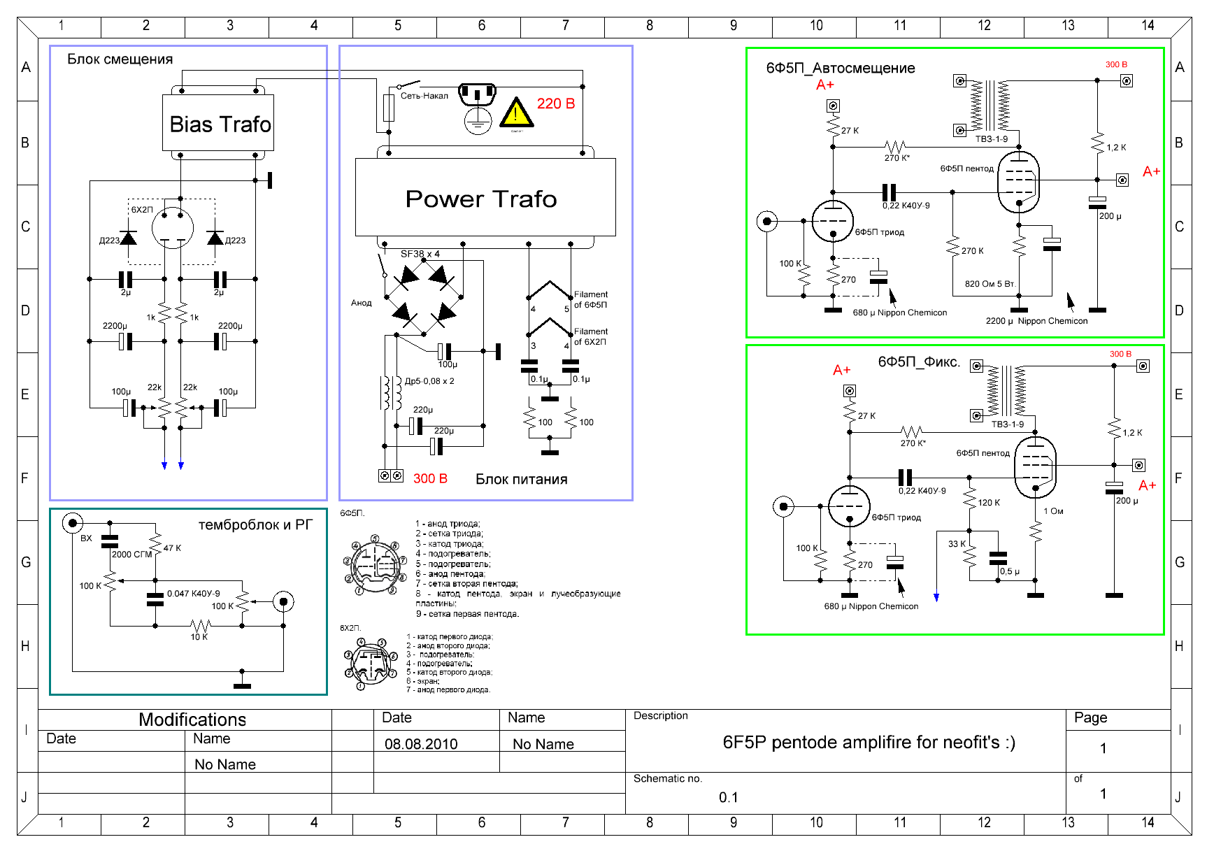 Добрый день уважаемые коллеги. Решил я собрать себе усилитель на лампах. Я не меломан, не аудиофил, но в своей радиолюбительской практике (34 года практики), ни разу не собрал ни чего на лампах. Особенно после того, как какой-то эстрадный усилитель на ГУ-50, не раряженным кондёром пропалил мне дырку в пальце, запах палёной курицы до сих пор помню. После этого случая, я вобще держался от ламп подальше :) Было мне лет 20 тогда. Но время идёт, возраст уже к 50 подходит, а я так и не собрал ни чего на лампах. Хочется мне что-нибудь РР на EL-34, к примеру, но оценил я обстановочку и понял, что это не фига не дёшево, а вдруг не зайдёт? Не хочется зря кучу денег выкинуть. И решил я собрать сначала что-нибудь по проще, а максимально просто это как раз 6Ф5П. Потому-что вторая схема в теме, это схема из книги Борисова "Юный рабиолюбитель" для школьного возраста. А я по ламповой теме нахожусь как раз где-то в "школьном возрасте". По этому попробую собрать на 6Ф5П, а если зайдёт,то буду пробовать дальше.