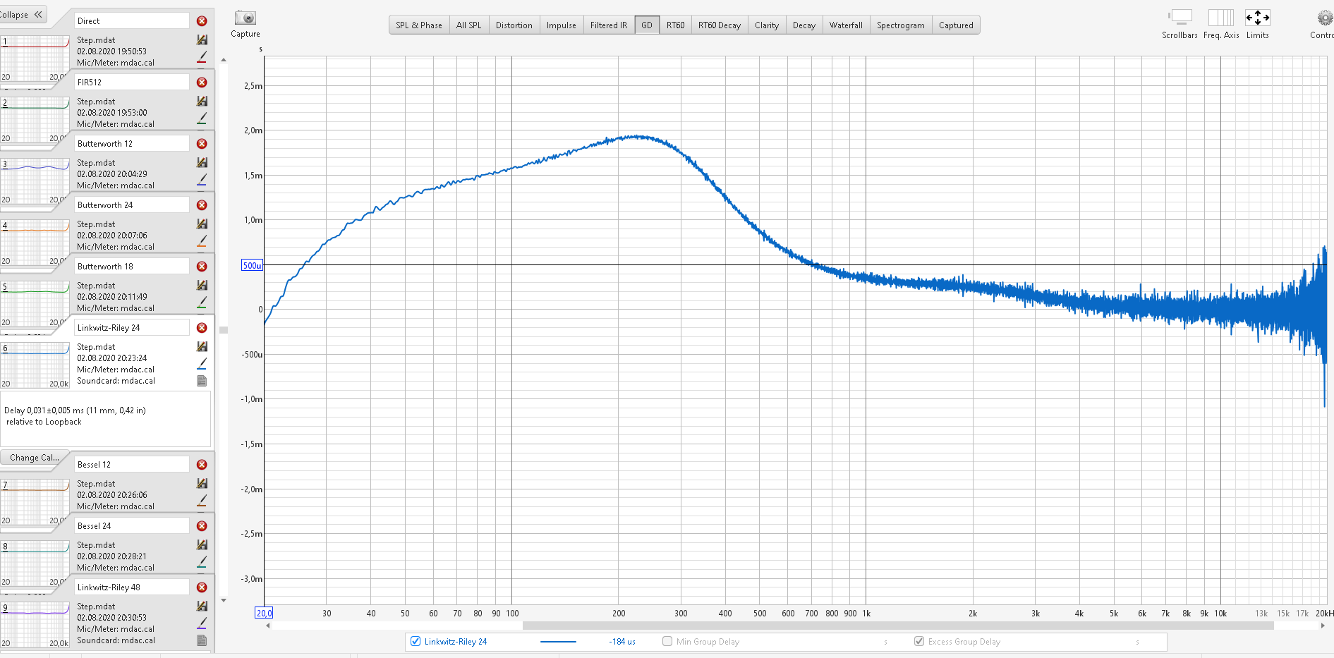 Для тех кому интересно увидеть гвз, да и АФЧХ других видов БИХ кроссоверов, я хотел выложить файл результатов измерений в REW но он весит 20мб и форум не хочет его погружать.