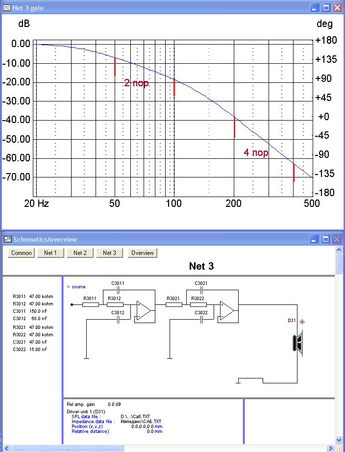 Электрическая АЧХ ФНЧ. Акустическая, ниже 100Гц 6-й порядок. До 25Гц, полку делает корректор Линквица.