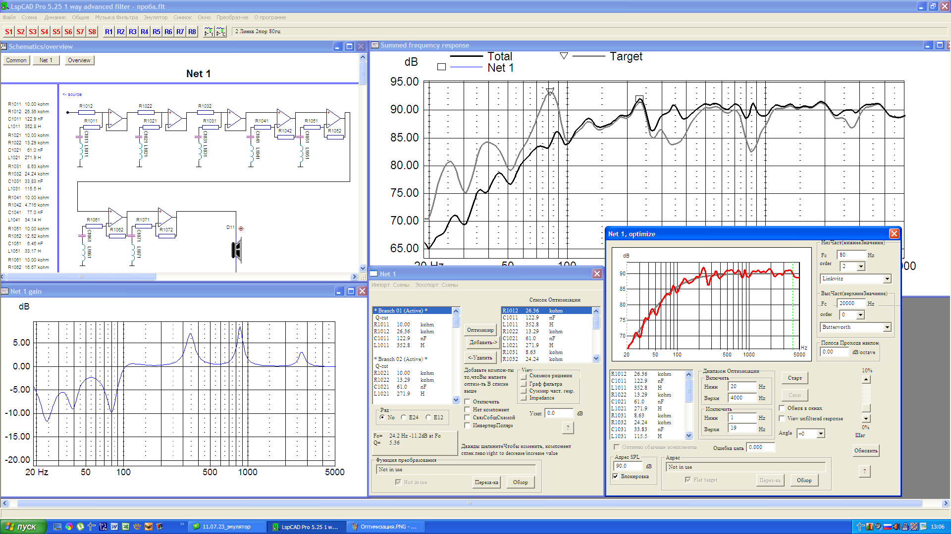ФНЧ проектируется в симуляторе, по АФЧХ саба в месте прослушивания, совместно с АФЧХ правой и левой АС.