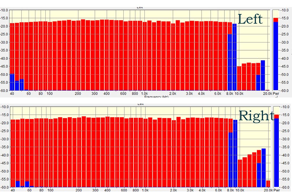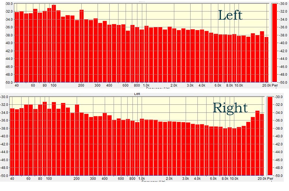 Сначала ничего не понял, но потом заметил вот что: при прогоне свиптоном, начиная с верхней середины, выше основного тона бежит резонанс? (не знаю как правильно назвать) и в правом канале он реально намного выше чем в левом. Возможно на шуме это и дает такой подъем?