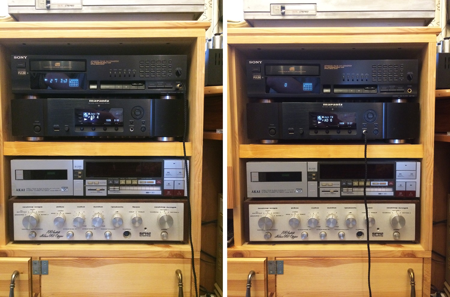 3. Чуть ощущается некоторый недостаток в НЧ-диапазоне, очевидно - из-за недостаточно низкоомного выхода использовавшихся источников - КД-проигрывателя Sony и сетевого плеера Marantz.