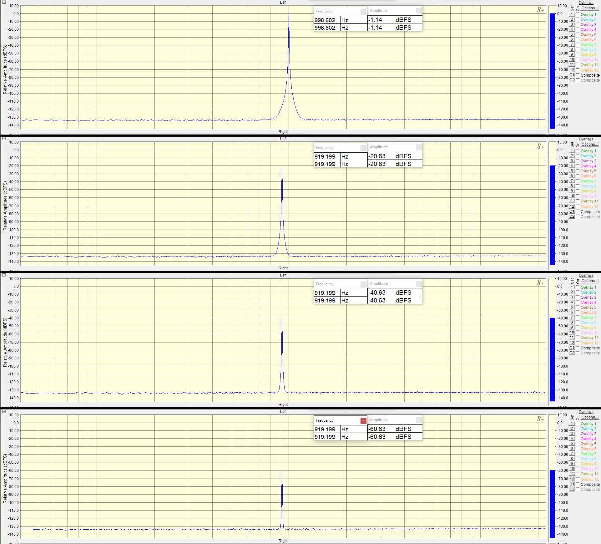 И это правильно. Обычно 0, -20, -40, -60 дБ.Roman писал(а): 14 фев 2022, 08:12 на серьезных форумах, при измерении спектра ЦАПов указывают при каком dB FS производиться измерение (например 0 dB FS, - 6 dB FS, - 10 dBFS). От этого зависят результаты измерений.
