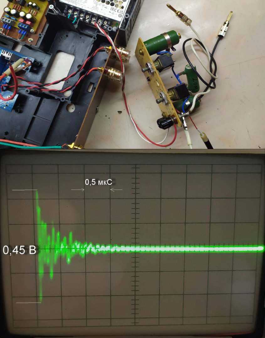 Кстати, перестановка конденсатора с нагрузки на клеммы БП, никакого уменьшения звона не даёт.