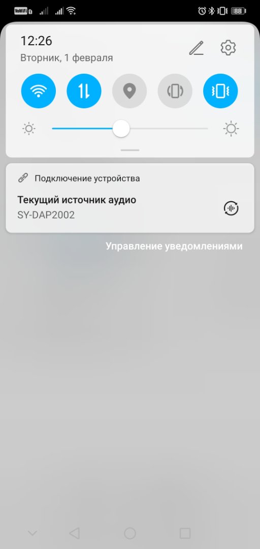 Зашел в настройки плеера, передать музыку по блютуз на усилитель (модель блютуз названия выбрал) .