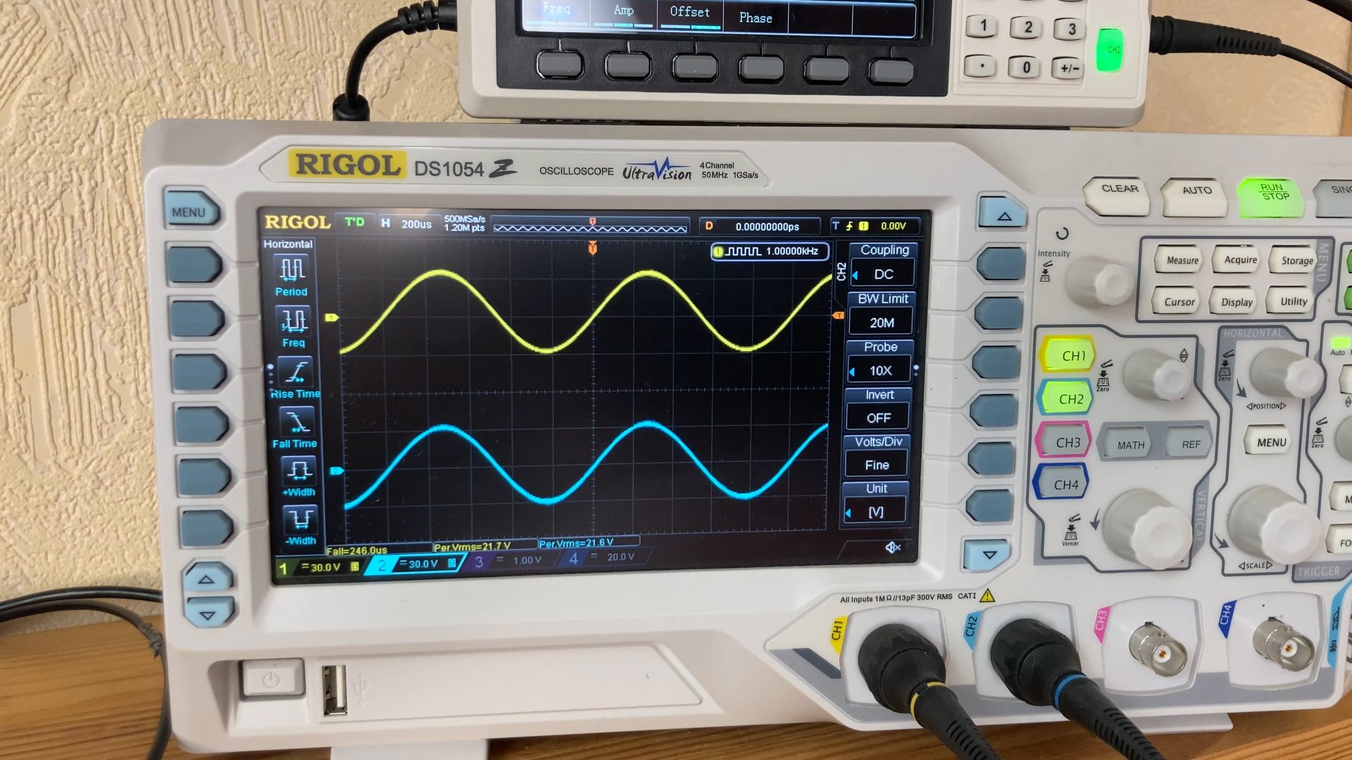 Сделал замеры мощности усилителя. Питание платы 42 Вольта. Чстота сигнала 1кГц.