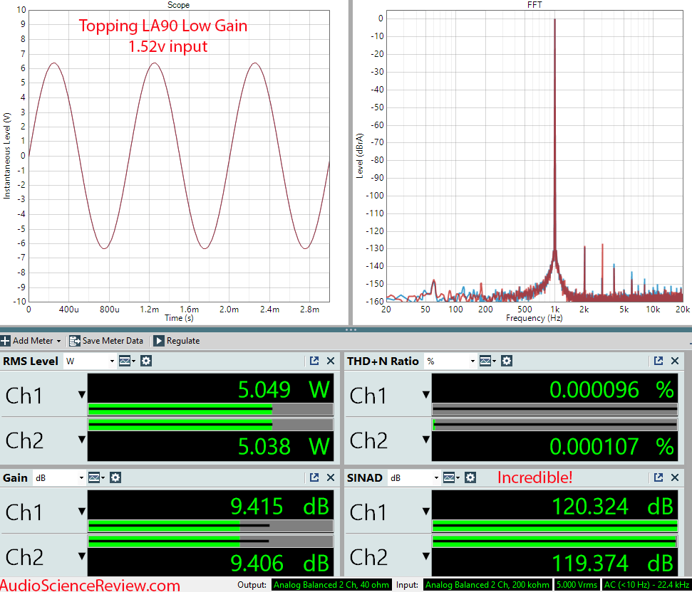 А кто-нибудь может внятно сформулировать, за счет чего получилось такое счастье в THD+N=0.00009% (SNR =140 дБ) из такого ширпотреба как LM3886 (0.002%), причем при общем усилении равном 3 ?!!! Я еще понимаю, если бы на входе поставили сверхмалошумящие ОУ с усилением порядка 20, чтобы поднять сигнал без добавления шума до уровня искажений LM3886, но общее усиление 3 и 10, на 10-ке параметры уже хуже.
