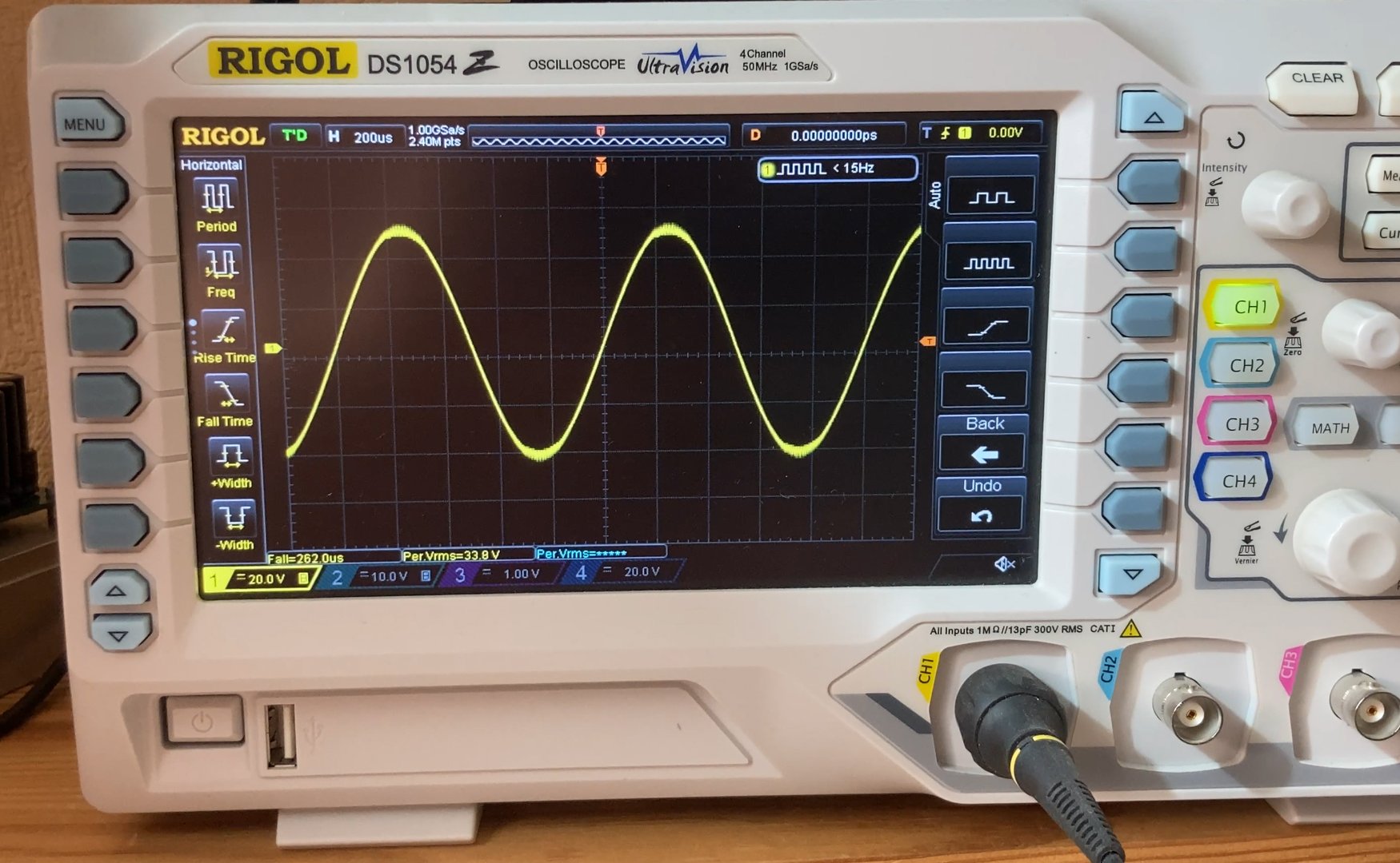 Видно, что уже близко клиппинг. 33,8 RMS дает амплитуду 33,8*1,4=47,6В. Т.е. запаса как бы уже и нет.