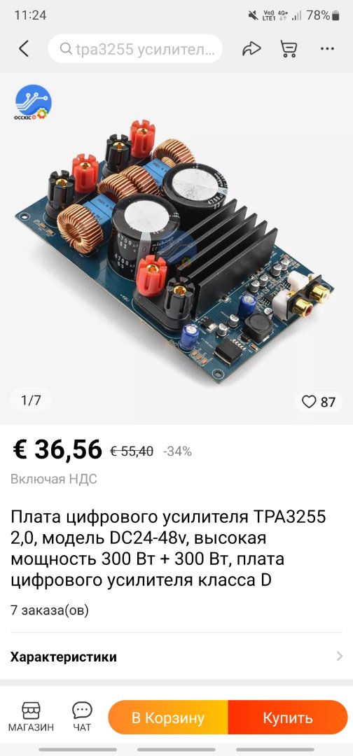 Здравствуйте,ситуация такая, прочитав хорошие отзывы об этой плате на tpa3255 в интернете решил заказать её себе,плата китайский клон aiyima a07 если не ошибаюсь,так как класс д очень привязан к качественному источнику питания взялся за это дело кардинально и собрал из батареек 18650 акум,26 вольт и примерно 140-150 ватт на одном заряде,сделал для усилка коробку,очень удобно, так сказать переносной hi-fi,брал на дачу,играл усилок часов восемь на средней громкости,для меня это гораздо больше чем нужно,автономностью я доволен,когда менял на плате кондеры, случайно содрал одну дорожку, слава богу всё работает сейчас там кондер,фото не много старое,есть пару интересующих меня вопросов так как совершенствованию нет предела.