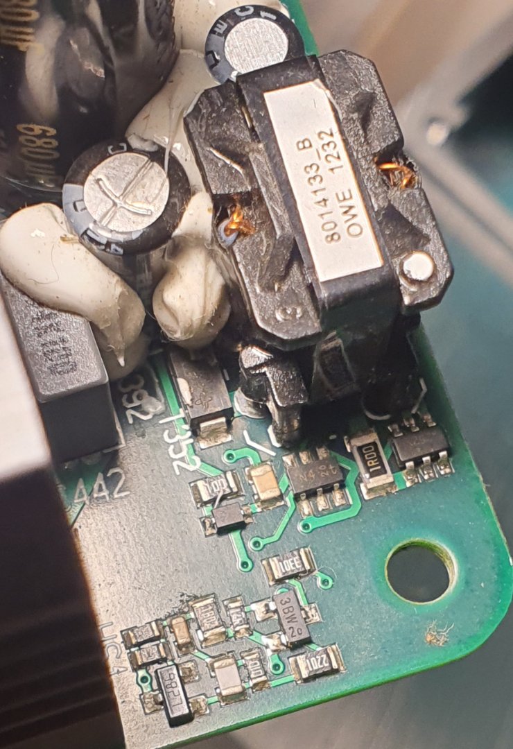 Еще 2 раза возил усилок с дома на дачу, эффект один и тот же. Дома работает, на даче нет. Напряжение и там и там одинаковое - 230 приходит на плату. Поменял штук 10 кабелей питания, перепаял и переткнул все провода. 1 раз он включился на даче, подключил проверить одну колонку, но потом больше не включался и перестал заводиться дома. Такое ощущение, что не стартует импульсный блок питания, либо врубается защита. Но сценарий я так поймать и не смог
