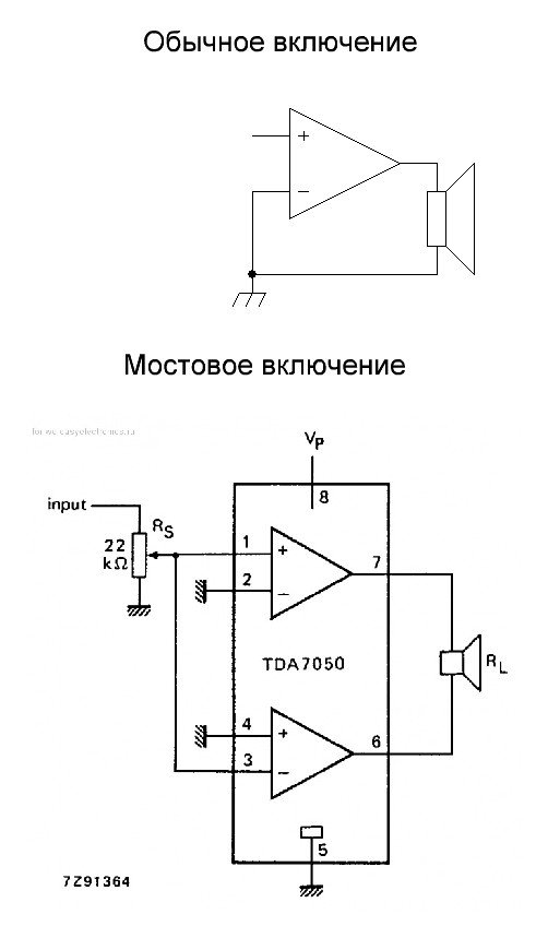 Усилитель можно подключить по обычной схеме, где нагрузка подключается одним концом к выходу, другим к общему проводу. С двумя такими усилителями, данный коммутатор работать будет. Но при этом образуется дополнительный земляной контур, что не есть хорошо.