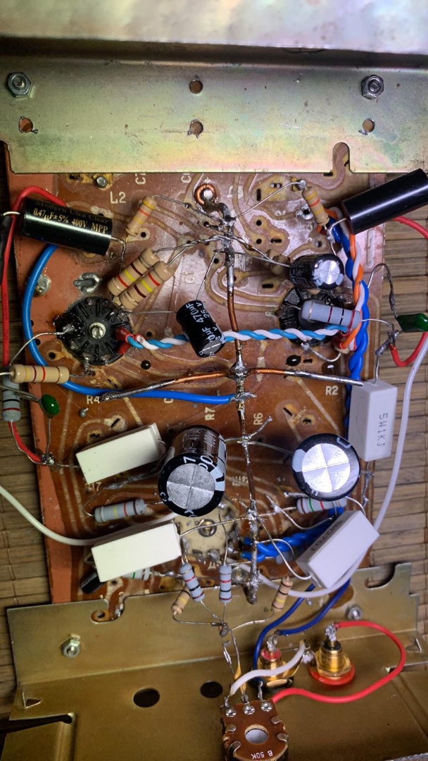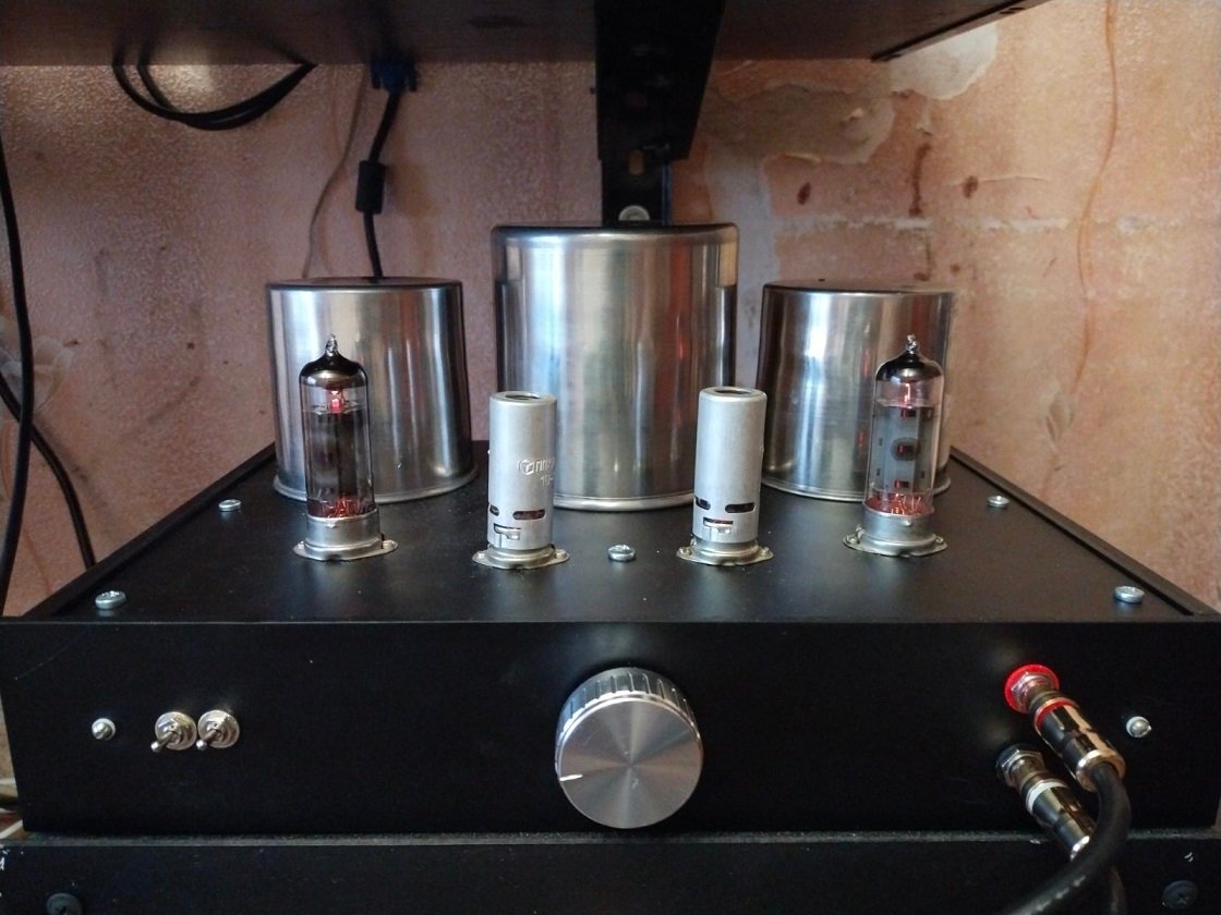 Доброй ночи )) мой Франкенштейн запел ))) рад безумно . И звук как по мне отличный . Пока работает только 1 канал ) нет лампы еще одной на выход пока что . Так же получил стрельнувшим кондером ) на фото выше видно , что попутал полярность . Есть фон (питание накала еще не заземлено ) в общем есть над чем работать . Но до ума доведу думаю . Желания еще больше появилось . Звук правда очень приятный . Учитывая еще и то с чего это собрано и как спаяно ( паяльник у меня…. Оторви и выкинь ) но постепенно допилю все нюансы . Скажу от себя - пробуйте поискать свой звук в лампах . Он там есть . Стоимость и звучание лампы меня приятно удивило . Когда доделаю , напишу впечатления от двух каналов ) и если кому то интересно сброшу схему и детальки . Все выписано . Лампы очень не дорогие . Деталек вышло грн на 400 . Пробуйте не пожалеете точно вам говорю . Добра всем ;)