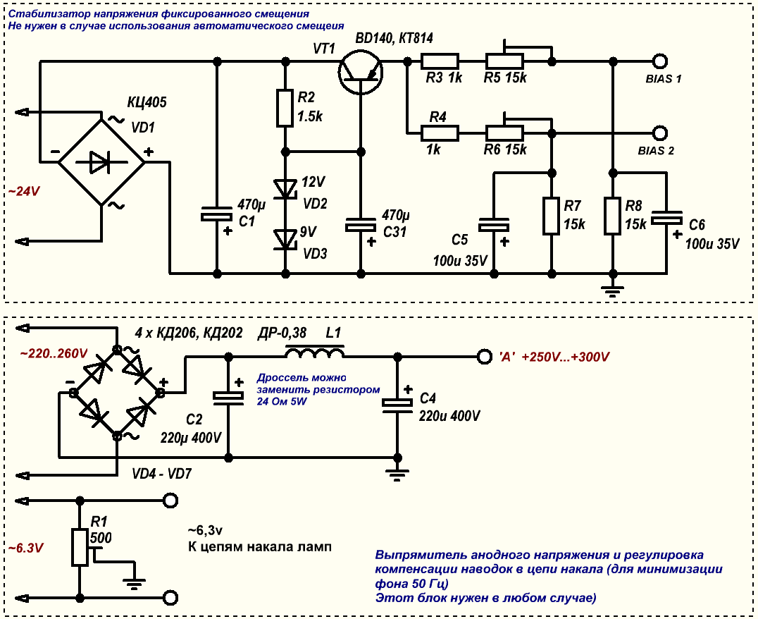 Многие настаивают на том, что ООС - "зло". Это необоснованное утверждение. Так же, как и про обязательность ООС (однако, при использовании многополосных АС, для тетродного/пентодного выходного каскада ООС необходима). Половина моих конструкций с пентодными/тетродными выходными каскадами сделана с ООС, половина - без неё. И всякий раз решение принимал при прослушивании разного музыкального материала.