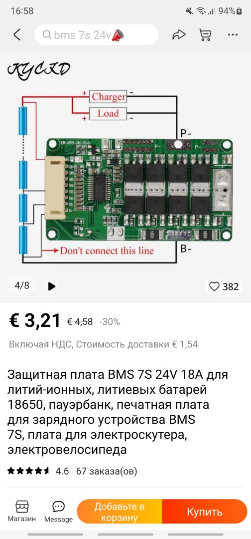 Может ли дело быть в bms?У меня вот такой. Сейчас заказал еще три батарейки, какой бмс тогда выбрать для 8s 3p ? Чтобы акум максимально ток отдавал.