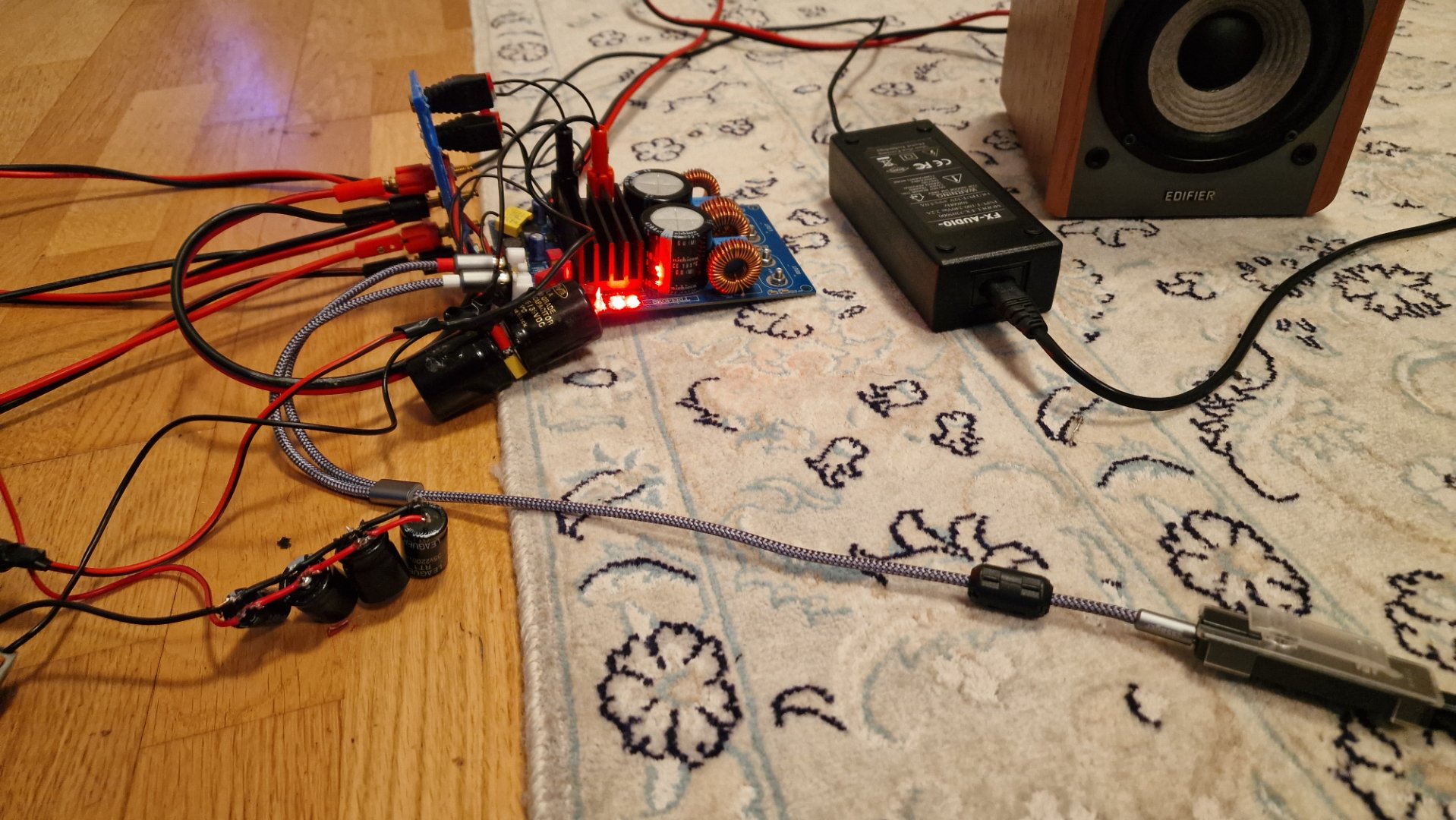Кстати, в копилку экспериментов - запитал 502й от 24в сборки на 6шт последовательных 18650 батарей. Надеялся услышать более чистые высокие без влияния импульсного ШИМ блока питания. В высоких разницы не услышал, зато сразу явно размазался панч у баса. Не думал что будет так слышно, но как факт.