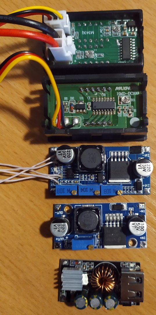 Сколотил вот такой универсальный повербанк: Запитывает 12-ти вольтовые 3-х ваттные светодиодные светильники, FM/MP-3 плеер. Есть выход на что либо менее низковольтное (регулировка 1,5-12В). А также USB зарядка QC 2.0,3.0.
