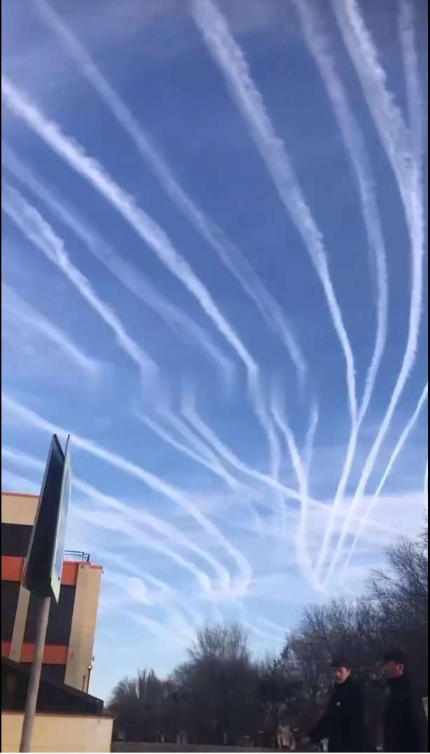 Летят "подарки" на новый год. Небо над русской астраханью покрыто следами от запущенных ракет.