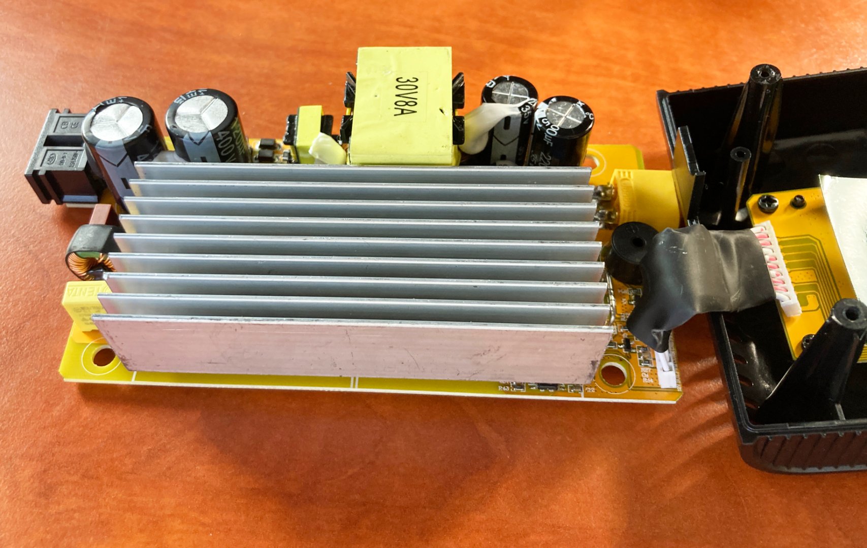 Довольно шумный кулер охлаждения, пришлось впаять резистор на 44 Ом, что бы немного уменьшить обороты, свистеть перестало, но всеравно шумновато. Сильно снижать обороты не хочется, охлаждать нужно нормальным потоком воздуха.