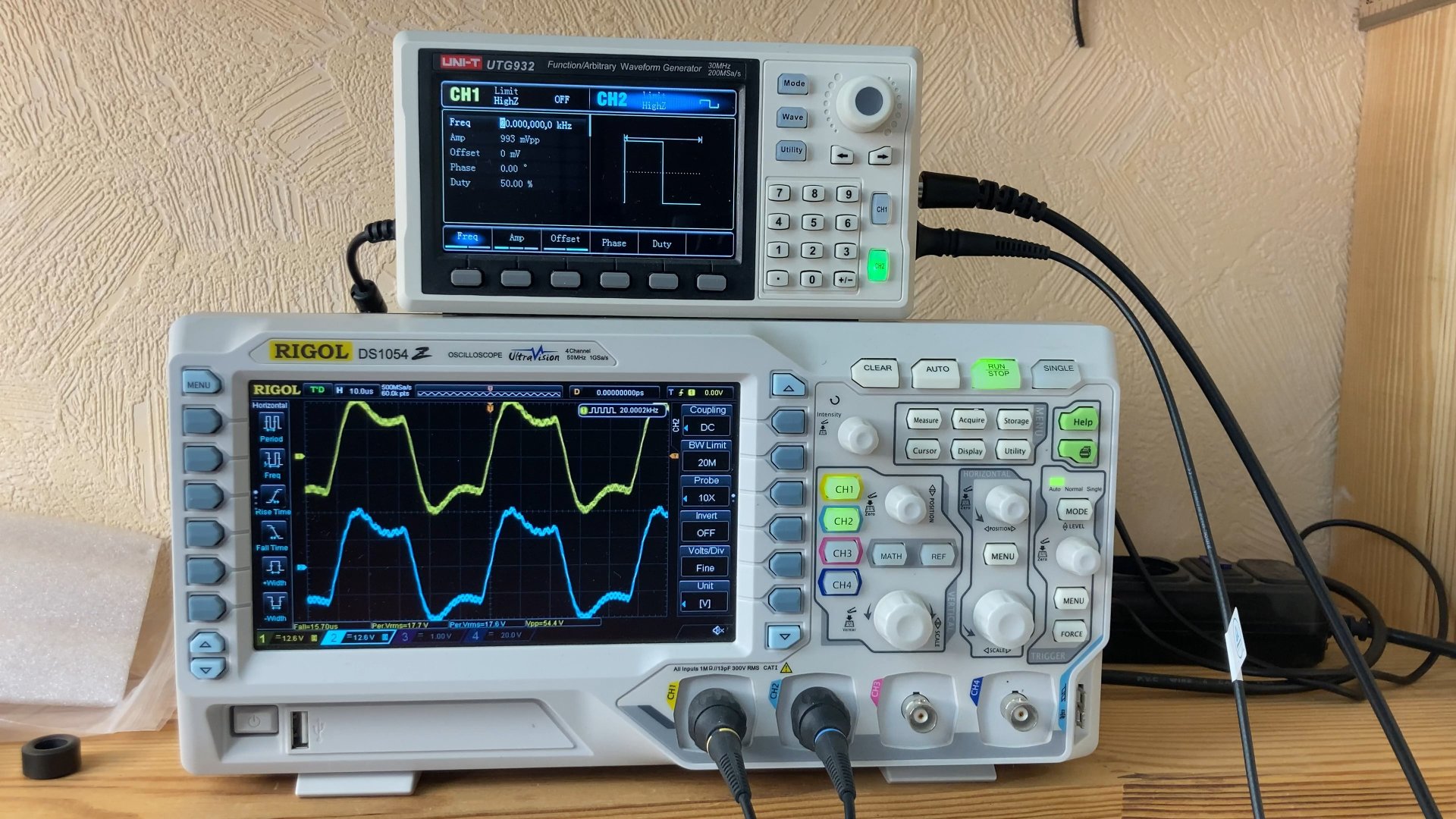 Сделал замеры меандра при нагрузке 4 и 8 Ом на разных частотах.