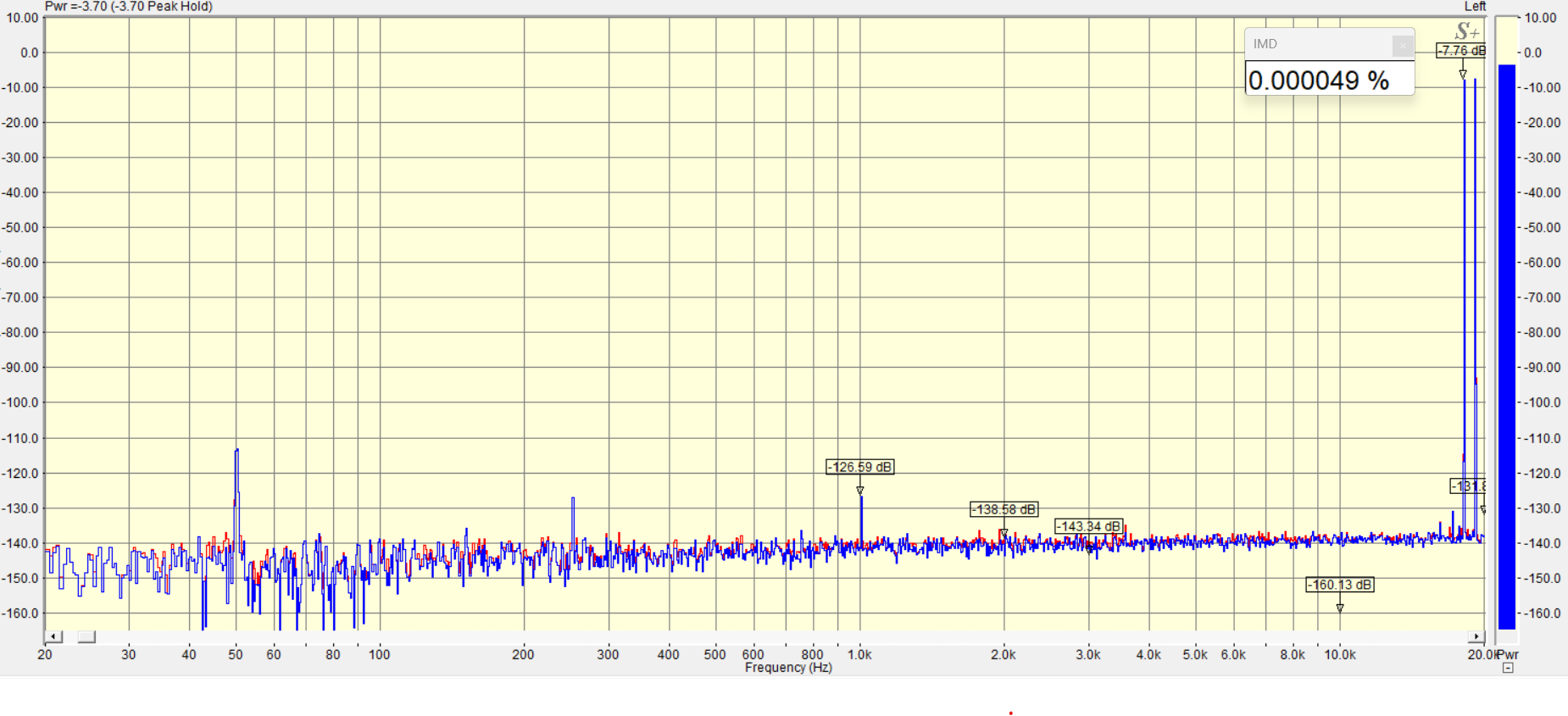 Интермодуляция, сигнал 18к+19к, 1к1,5Вт+5Вт, пиковая мощность 20Вт.