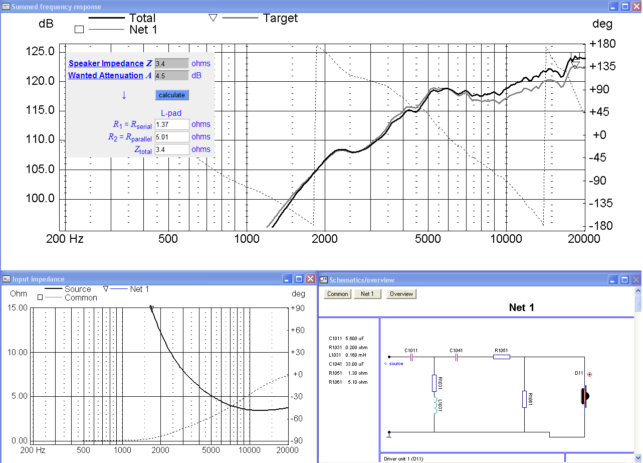 Импеданс динамика на частоте раздела 3,4 Ом. Нужно ослабить на 4,5 дБ.