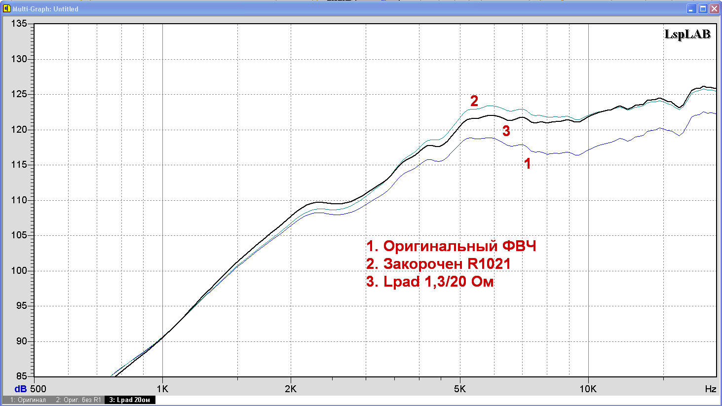 Дался Вам этот Lpad. Чуда в звуке с ним не будет. Я же писал, что нужно оставить всё как есть, а изменением сопротивления R1021 от 2,7 до 0 Ом выставить уровень ВЧ по вкусу. Фаза на частоте раздела, изменяется незначительно, максимум 20º.