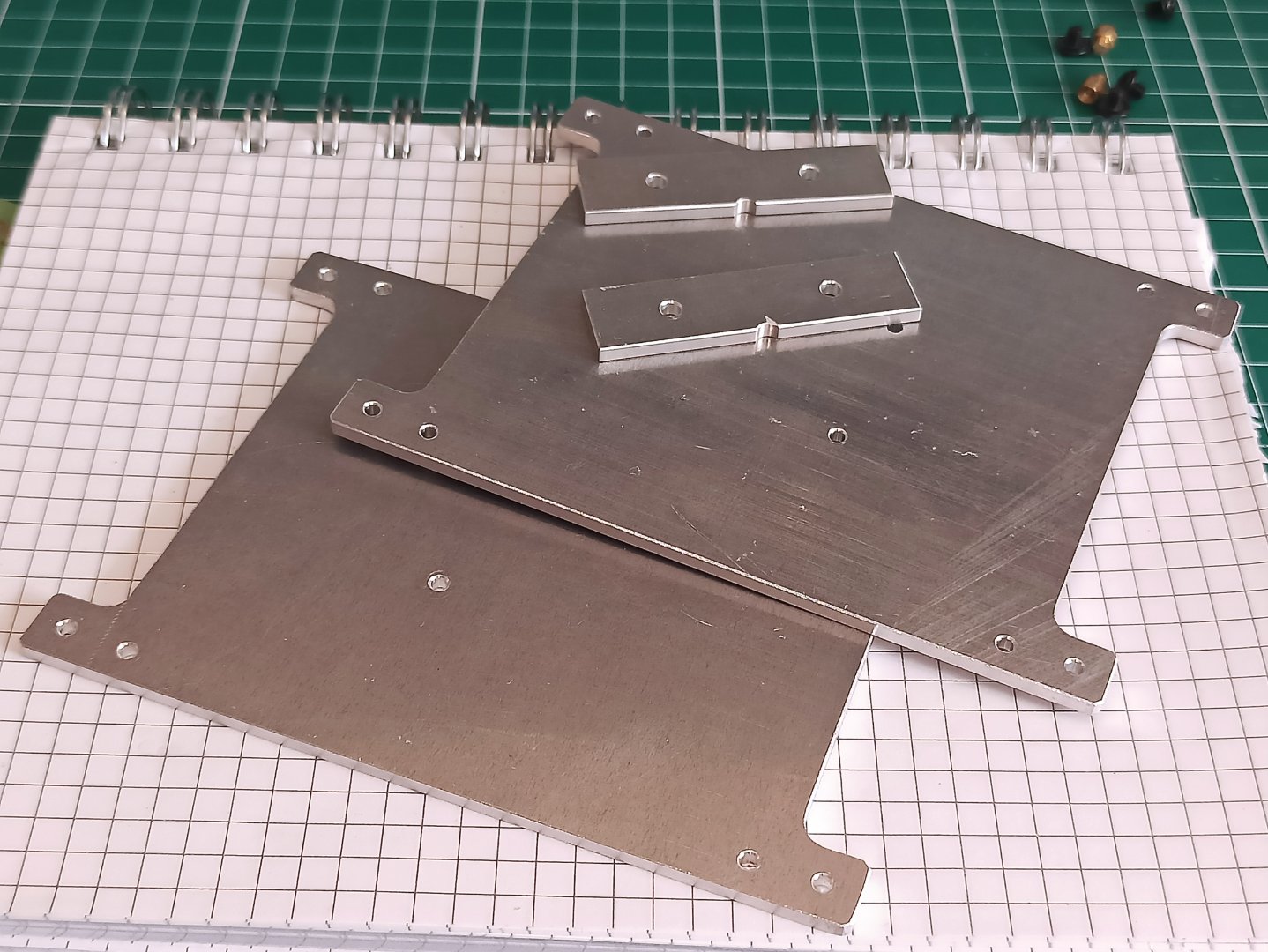 Для охлаждения чипа буду использовать две алюминиевые пластины толщиной 3мм. Одна маленькая переходная, в ней отверстия сквозные, без резьбы. Вторая основная с ушами для крепления к чему либо. На ней все отверстия с резьбой m3. Таким образом винты проходят насквозь маленькую пластину и вкручиваются в большую, тем самым зажимается маленькая пластина между чипом и основной пластиной.