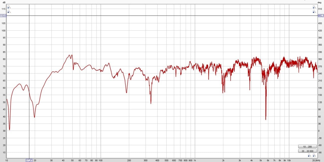Поле разминки и измерений TS, в очередной раз был проклят советский аудиопром. Fs оказалась 31Гц. По паспорту 25 Гц ±5 Гц, и я наивно надеялся на 20Гц.
