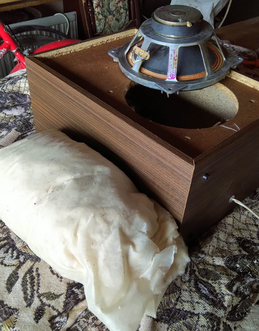 Я разобрал имеющиеся в наличии колонки и оказалось, что их уже с завода модернизировали. Динамики стоят 10ГДШ-1 4Ом, фазоинвертора нет совсем, наверное половину объема занимает вата, динамик прикручен не шурупами а болтами да задняя стенка сделана с толстой ДВП. Подвесы е-ссно в труху, ящик не рассохся. Так что под имеющееся декоративное отверстие в решетке наверное можно устроить какую нибудь пищалку. Утолщить (сзади наклеить и прикрутить доп. укрепление стенки), по швам извнутри доп. пройтись монтажной пеной, смонтировать нормальные контакты. Большинство "улучшалок" сделаю, когда понравится звучание в этом ящике. Ну а пока надо заказать подвесы.
