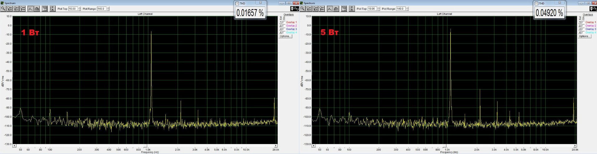 Видно, що на 1 Вт все досить непогано, а от на 5 Вт - "йолкі-палкі, лєс густой..". Ну в автора був майже той результат, так що екскремент вийшов вдалий ;) . А звучання на цьому 1Вт (а переважна більшість адекватного населення на ньому і слухають) досить цікаве. Що вирізняє його - це більш натуральні тембри. Особливо примітно це на класиці. Що не вистачає? Хотілось би більшої прозорості (детальності). Звук на струнних якись "зернистий". На лампі цього не має - там все прозоро і плавно. Можливо вхідний конденсатор все приторможує. Зараз там стоїть поліпропілен від Панасоніка. П605 можна замінити на П608,609 - там К>200. Які будуть думки?