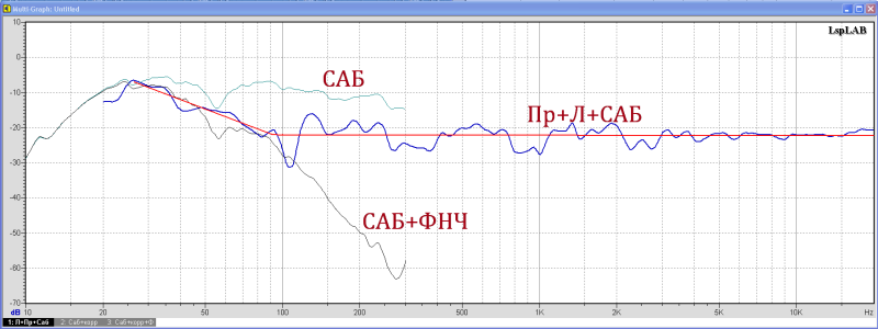 ФНЧ проектируется в симуляторе, по АФЧХ саба в месте прослушивания, совместно с АФЧХ правой и левой АС.