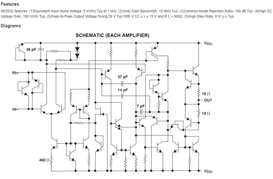Получил как раз микросхемы с Али, NE5532 от обоих продавцов оказались фэйковые: нет в наличии защитных переходов транзисторов, вкл. как диоды между входами 2-3 и 5-6. Это IN+ и IN-. (для полезности другим привожу схему). В тех ОУ что стояли эти ножки звонятся как положено, в обоих направлениях.