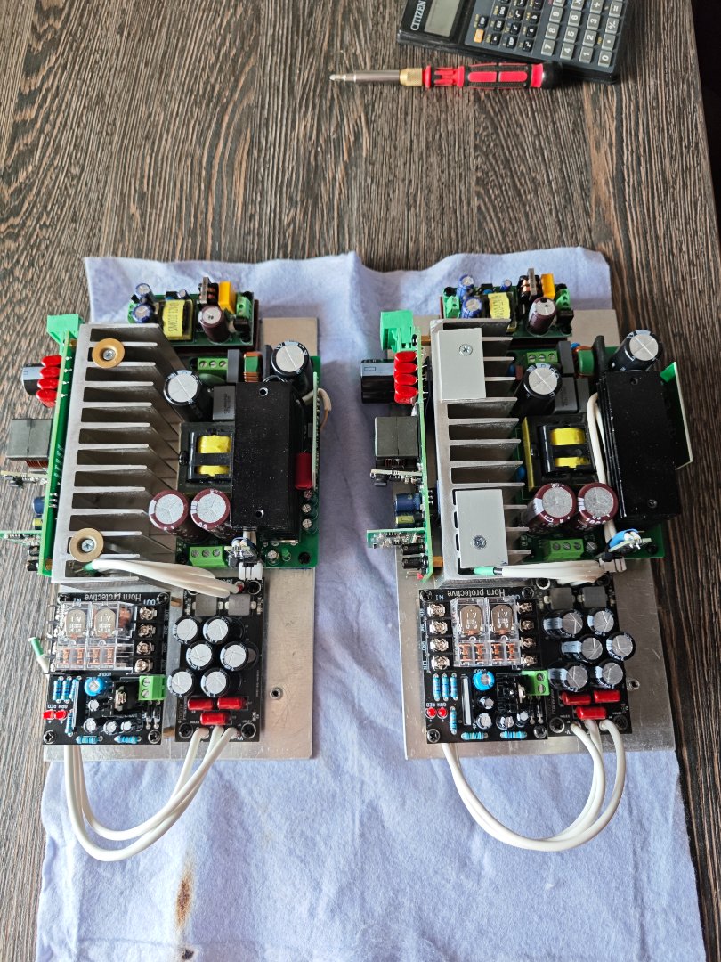 Первое мое двойное моно. Мощности 750вт на два канала 4Ом, до искажения синуса.
