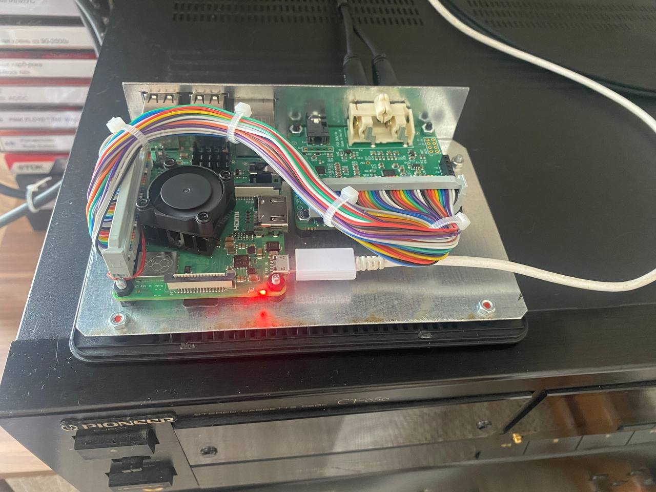 Пока вот так оно работает, жду разьем питания, потом уже закрою корпус.