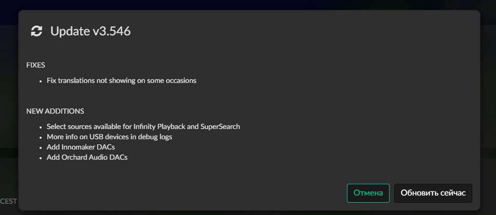 Пишет, что необходимо залогинится в my volumio. Но после логина, ситуация остаётся прежней.