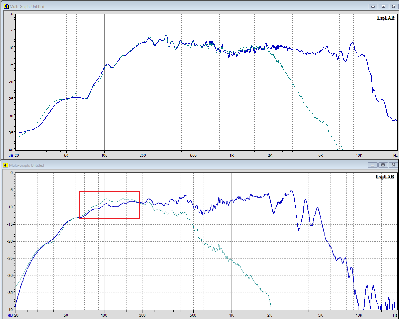 АЧХ практически та же (немного опустились НЧ), но клятая межполосная фаза разъехалась в обоих полосах.