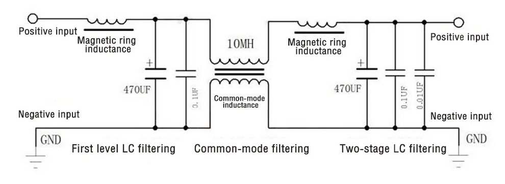 Кстати на картинке которую вы показали, нарисована одинаковая земля на входе и выходе фильтра, если выполнить это условие то синфазный дроссель улетит в насыщение как минимум, и он перестанет выполнять свою прямую функцию. Я ещё понимаю необходимость этого фильтра при питании усилителя от бортовой сети автомобиля т.к. она там может быть достаточно грязной, но что бы применять его для ИБП.... я думаю изначально нужно чётко понимать что мешает от ИБП.