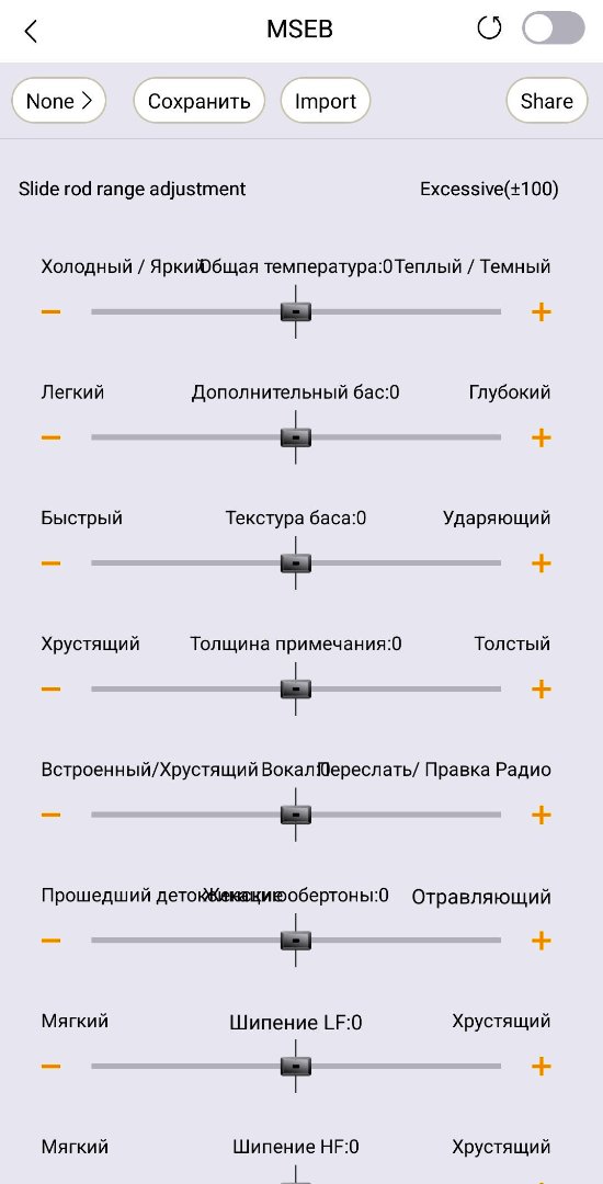Overall Temperature (Общая температура звучания) настраивает баланс частот от «теплого» до «холодного».