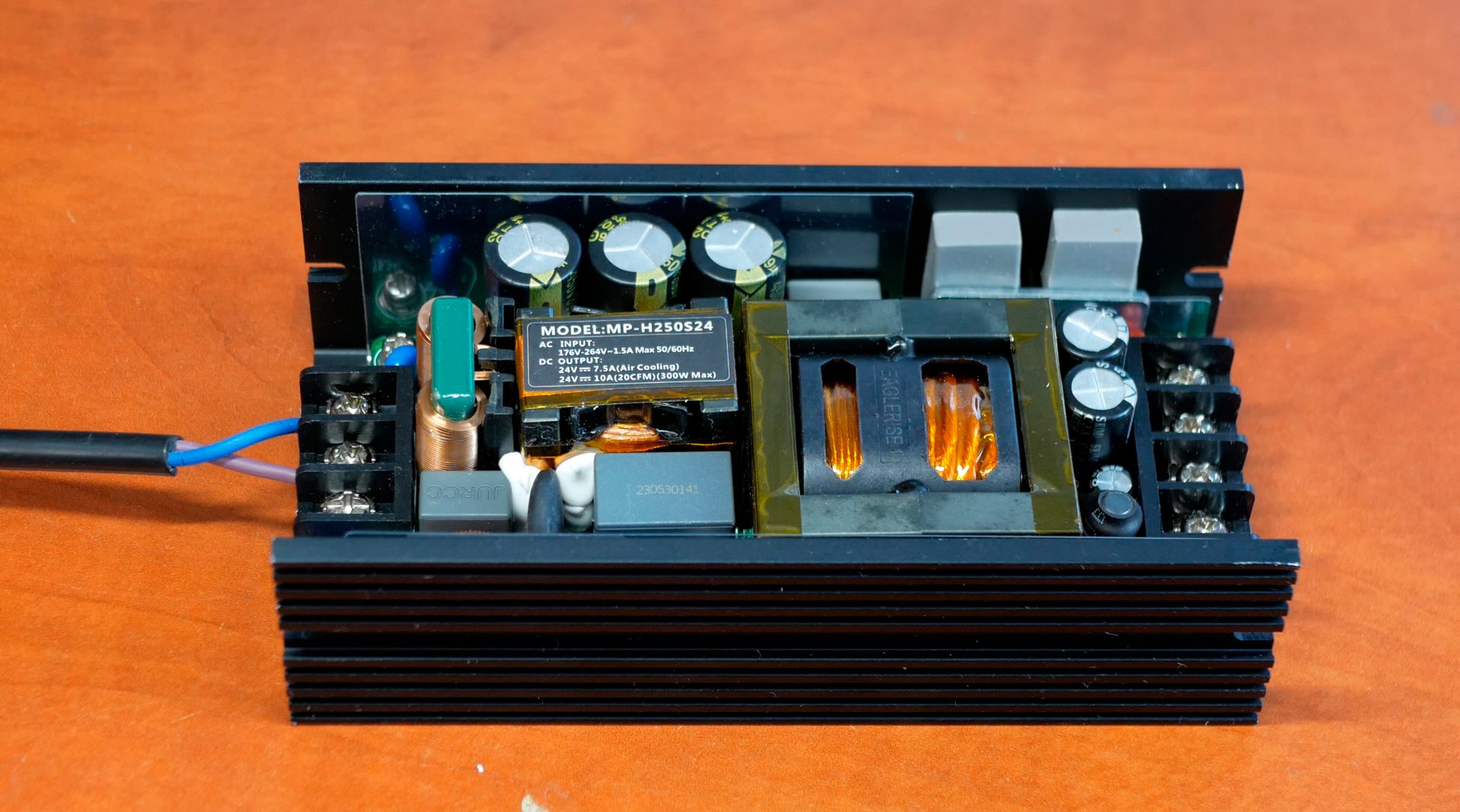 Поэтому я заказал еще один блок питания, который теоретически даст мне красоту на осциллографе. Блок на 250 Вт 24 Вольта.