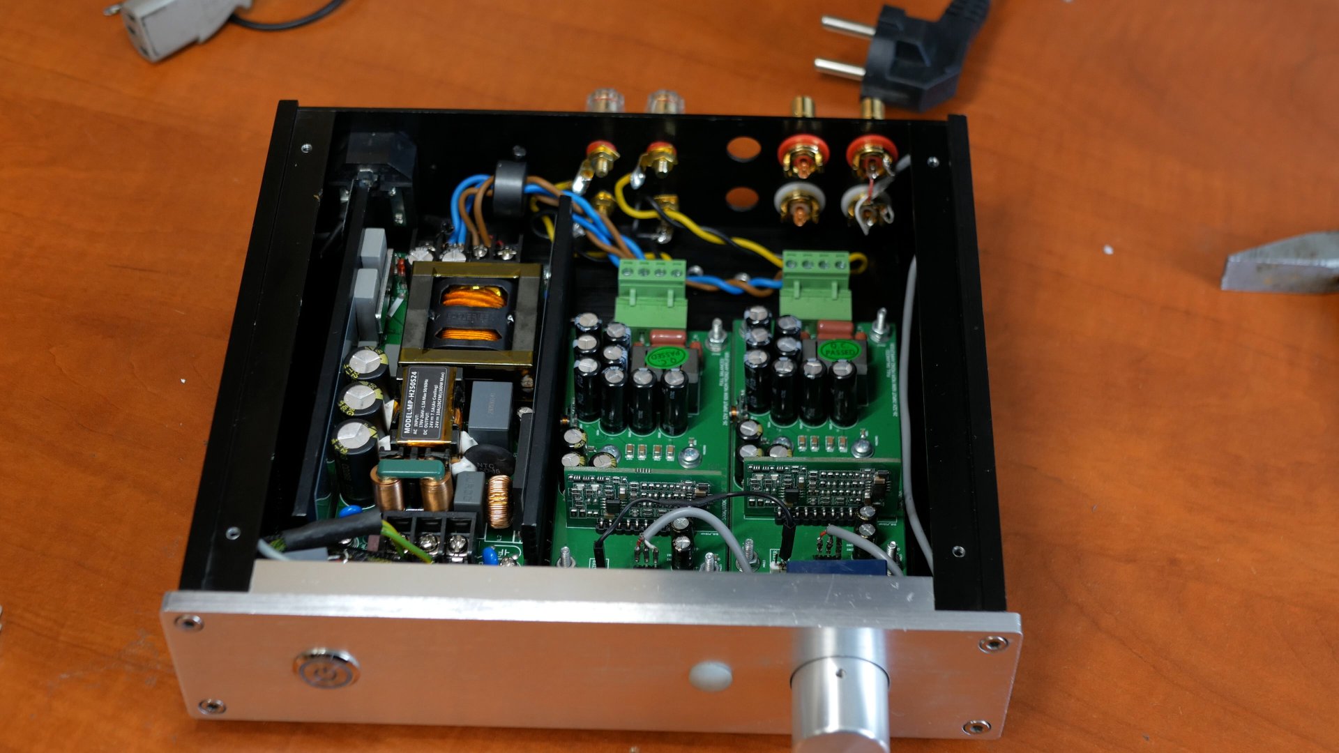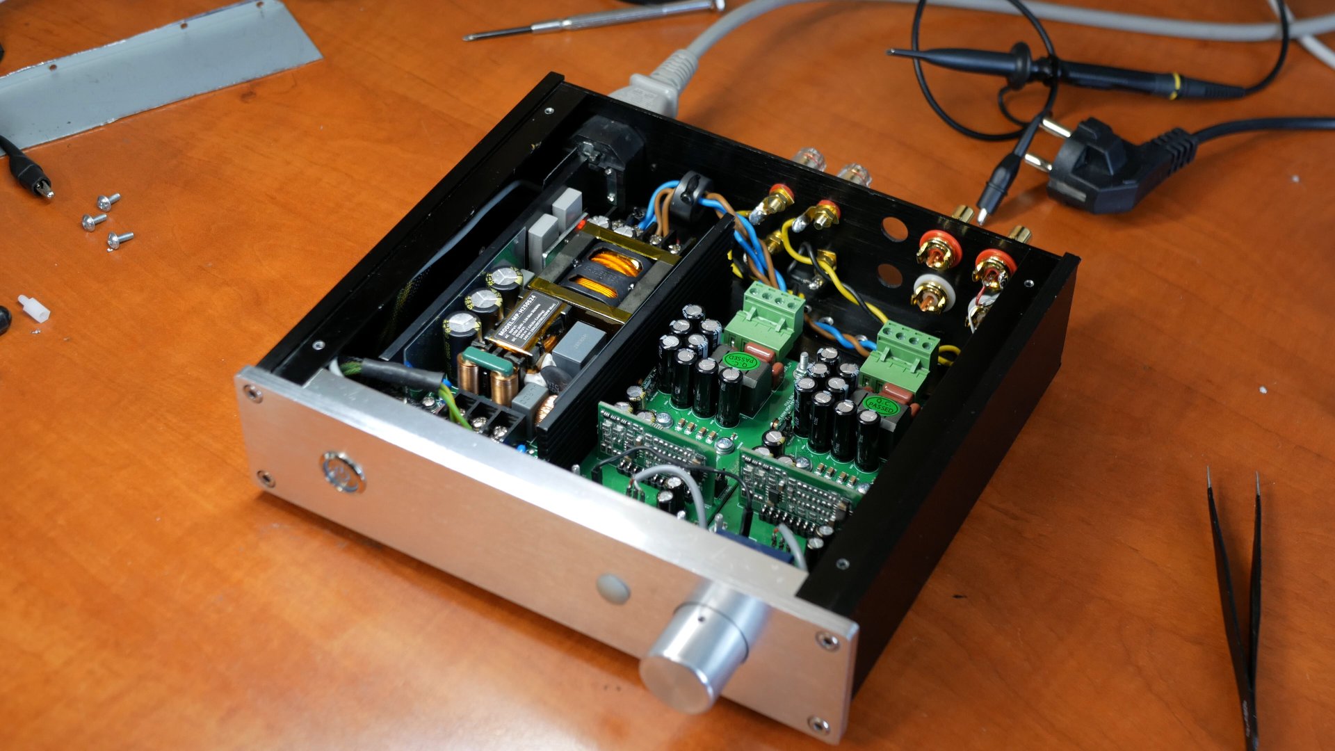 Понравился мне этот усилитель, но моему внутреннему перфекционисту не давало покоя помехи на несущей частоте от блока питания. То что это не влияет на звук это понятно, но хочется вот красоты.