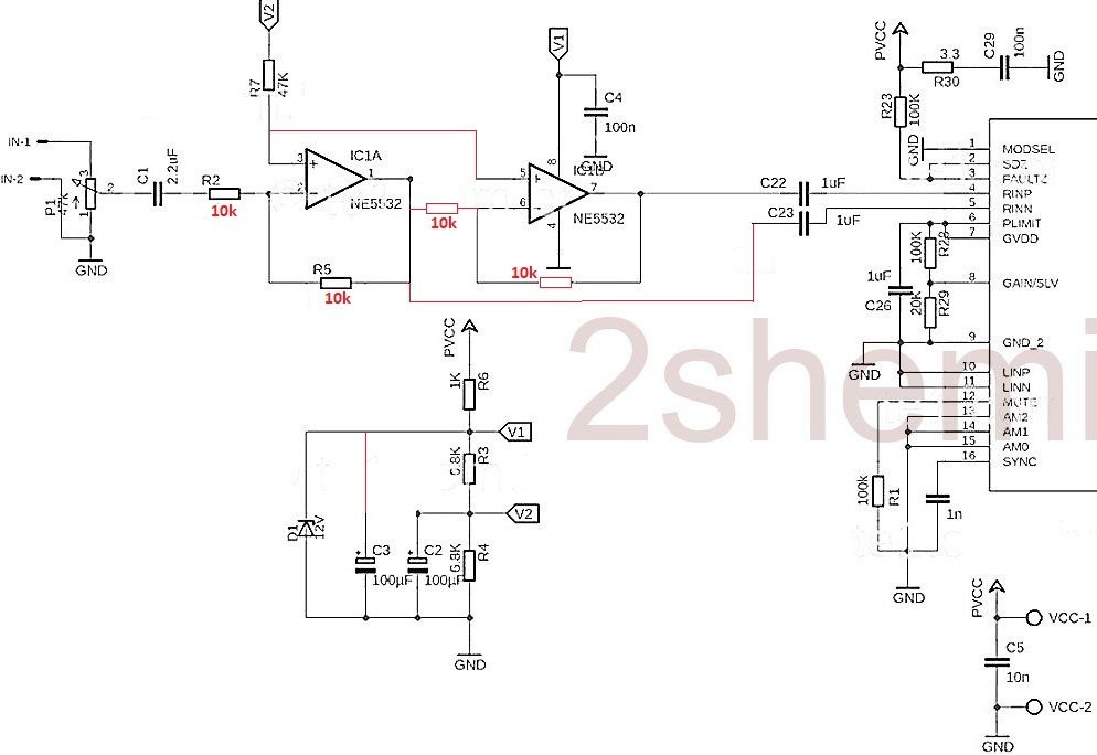 Я бы вообще сделал несложную доработку, превращающий предварительный усилитель в преобразователь несимметричного сигнала в симметричный. Без нафиг ненужного усиления, TPA3116 сама имеет Кус. 26дБ. А может и больше, нужно измерить что за номиналы китайцы поставили на выводы 7, 8, 9.