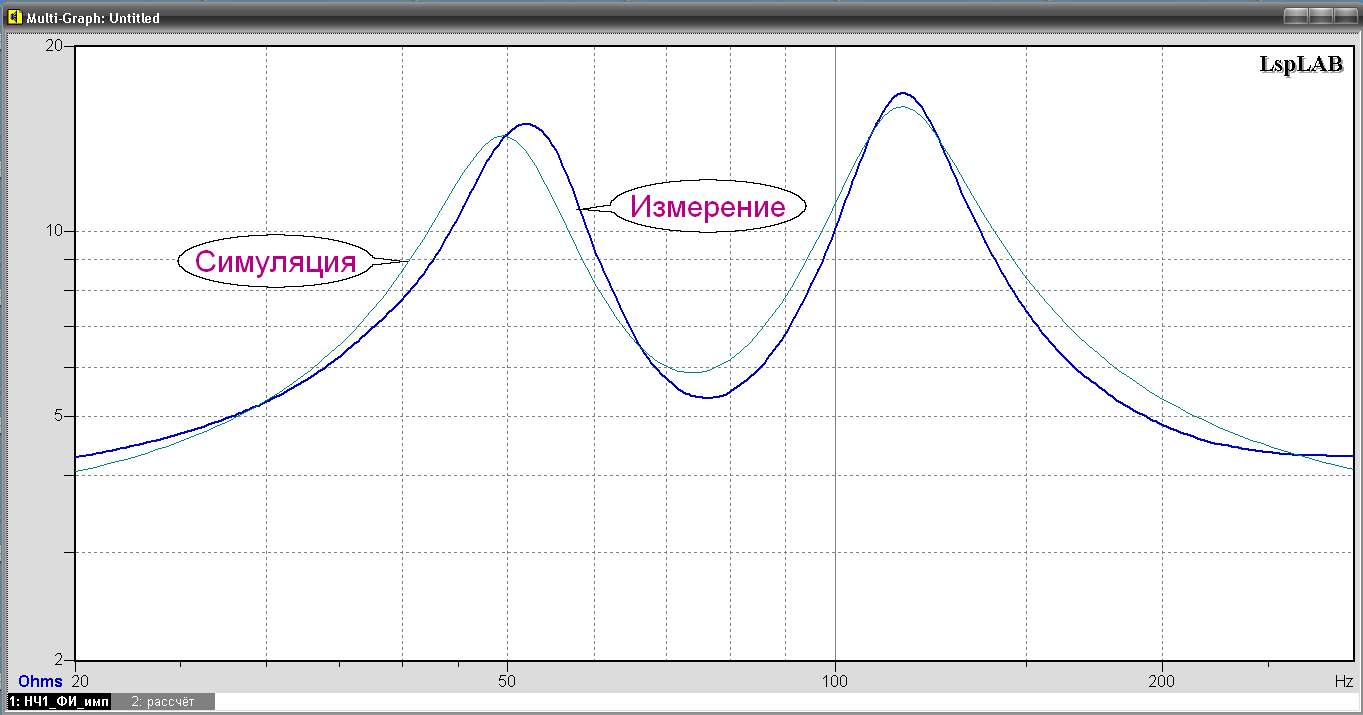 Длина трубы 60мм диаметр 50, поэтому, я просто не знал куда смотреть, теперь понял между горбами где самый меньший импеданс там и частота настройки ФИ, правильно я понял?