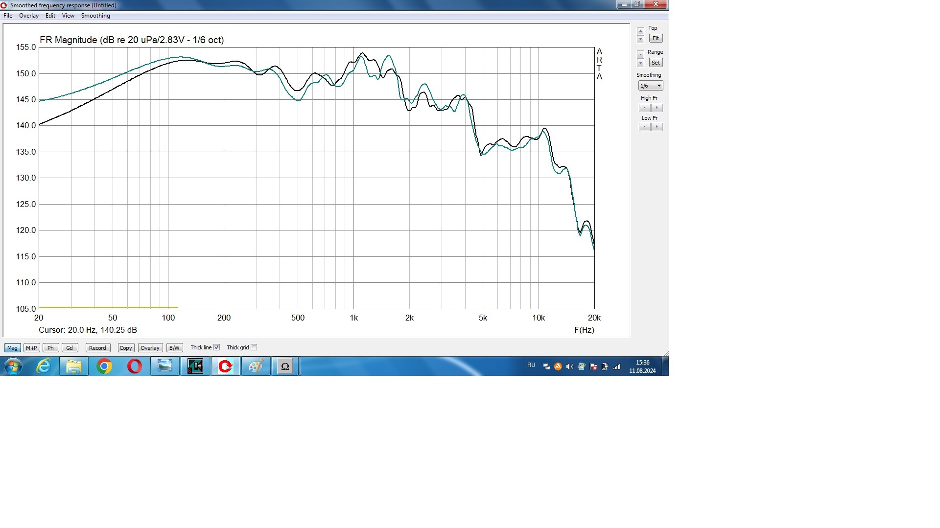 С 3-4см влияния комнаты практически не видно. Поэтому, чтобы корректно отображалась область НЧ, окно нужно выставить на максимум (не менее 100мс).