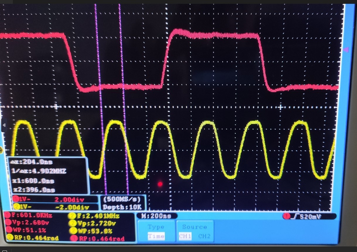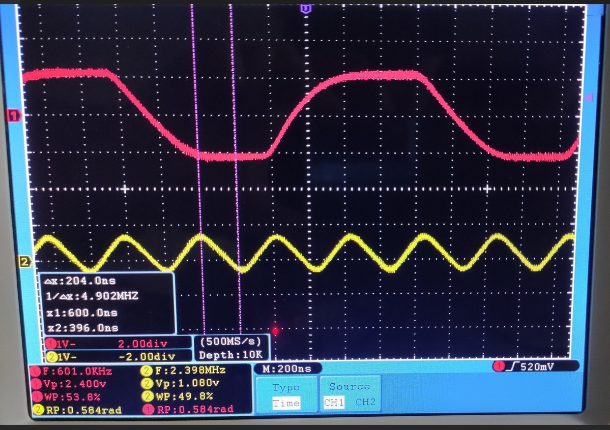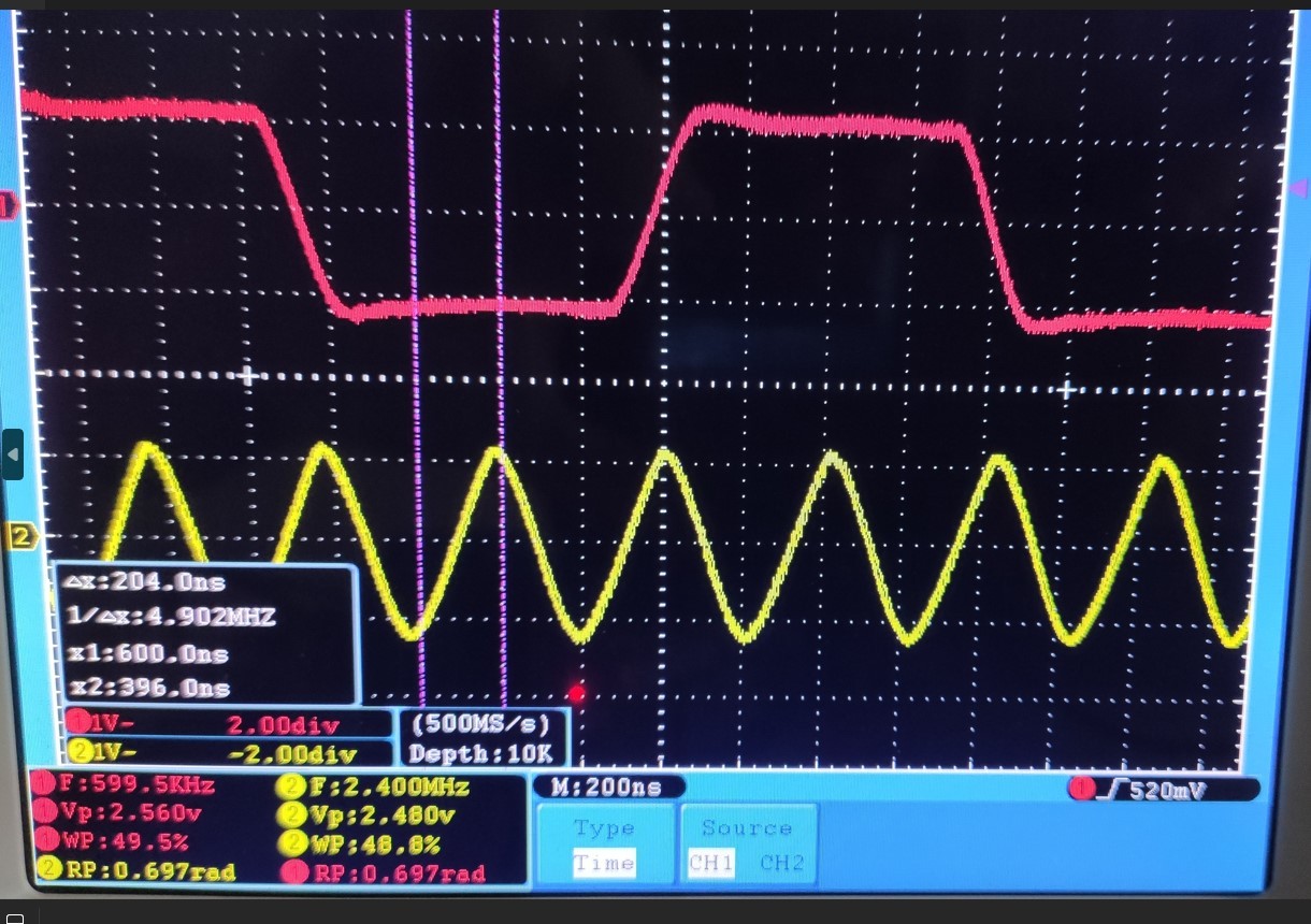 Источник сигнала генератор прямоуголных импульсов с частотой на 1м выходе 600кГц, на 2м выходе 2.4мГц.