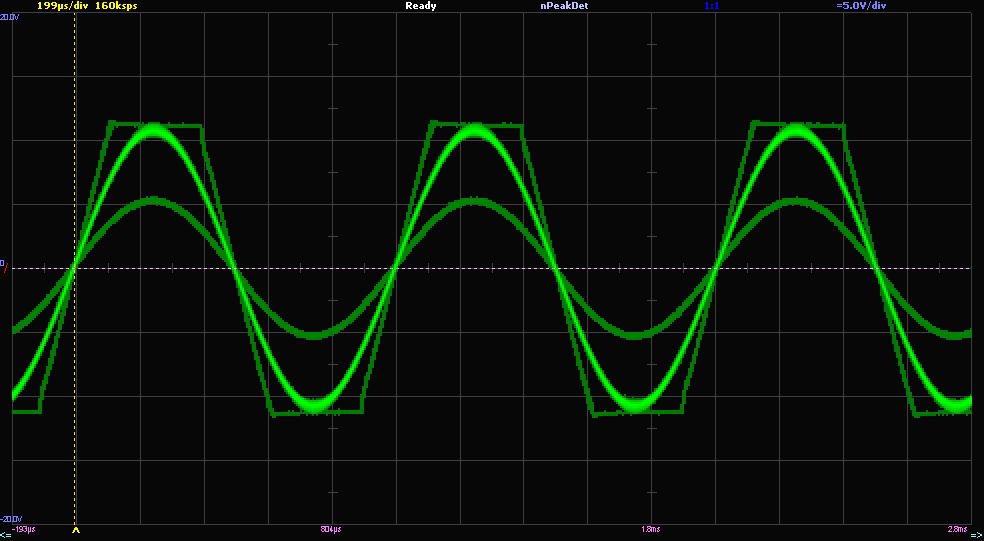 Вихідний сигнал при 50%, 100% і кліпі 160%